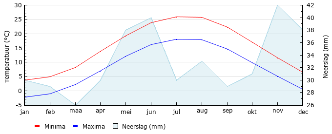 Gem. max. temperatuur in °C3.74.98.113.819.323.825.925.822.417.011.66.4