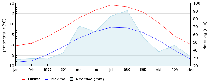 Gem. min. temperatuur in °C-8.3-7.6-4.6-0.93.36.48.48.26.02.1-2.6-6.8